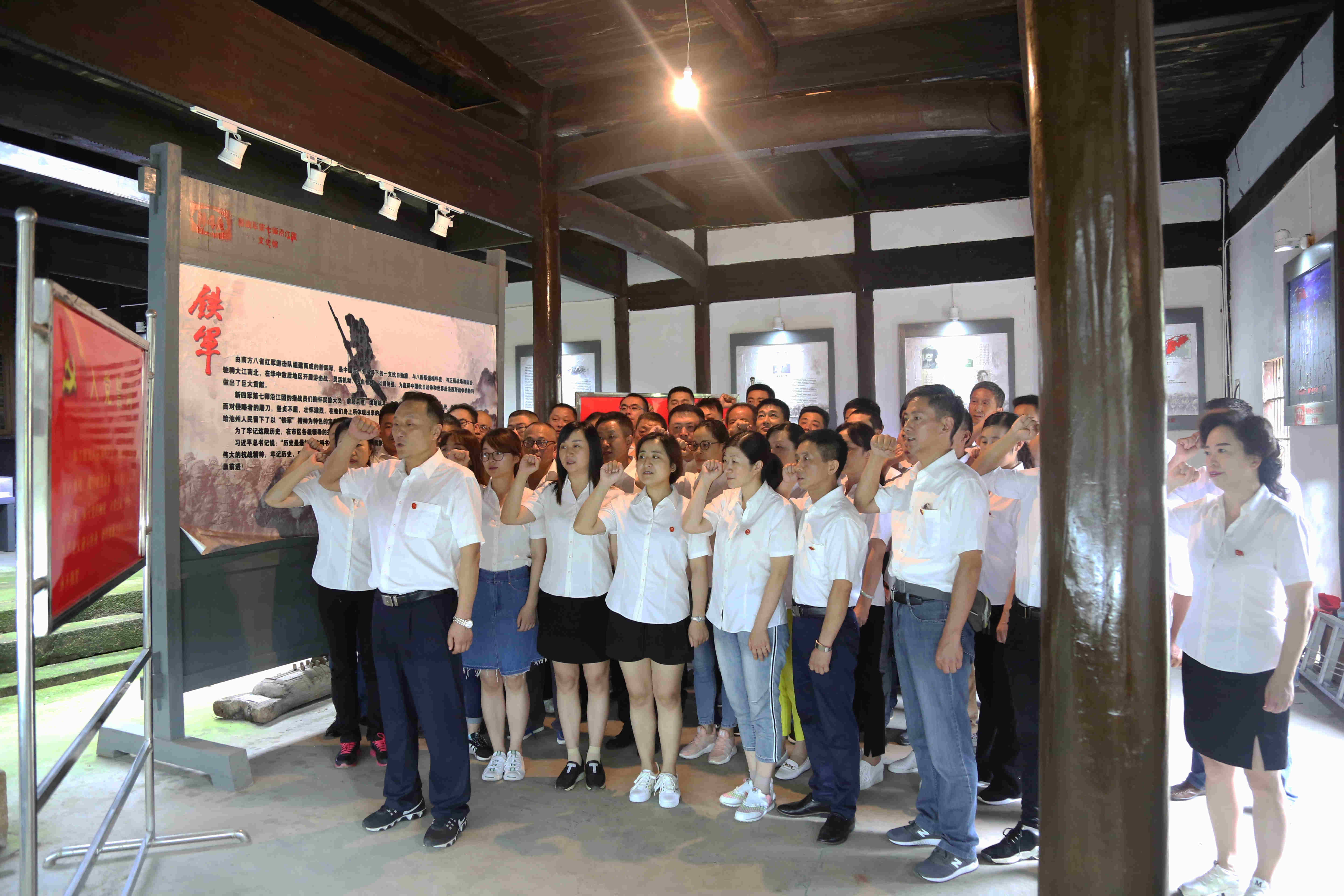 新四軍七師沿江團(tuán)是抗日戰(zhàn)爭時(shí)期堅(jiān)持在皖江地區(qū)進(jìn)行抗日斗爭的主力部隊(duì),在八年抗日斗爭中,第七師沿江團(tuán)在黨的領(lǐng)導(dǎo)下,歷盡艱難曲折,為民族解放戰(zhàn)爭作出了巨大的犧牲,以其輝煌的業(yè)績載入革命史冊。在大廳內(nèi),全體黨員在黨委書記何族興的帶領(lǐng)下,面向黨旗莊嚴(yán)宣誓,重溫入黨誓詞,更加堅(jiān)定了為共產(chǎn)主義事業(yè)奮斗終身的理想信念。
