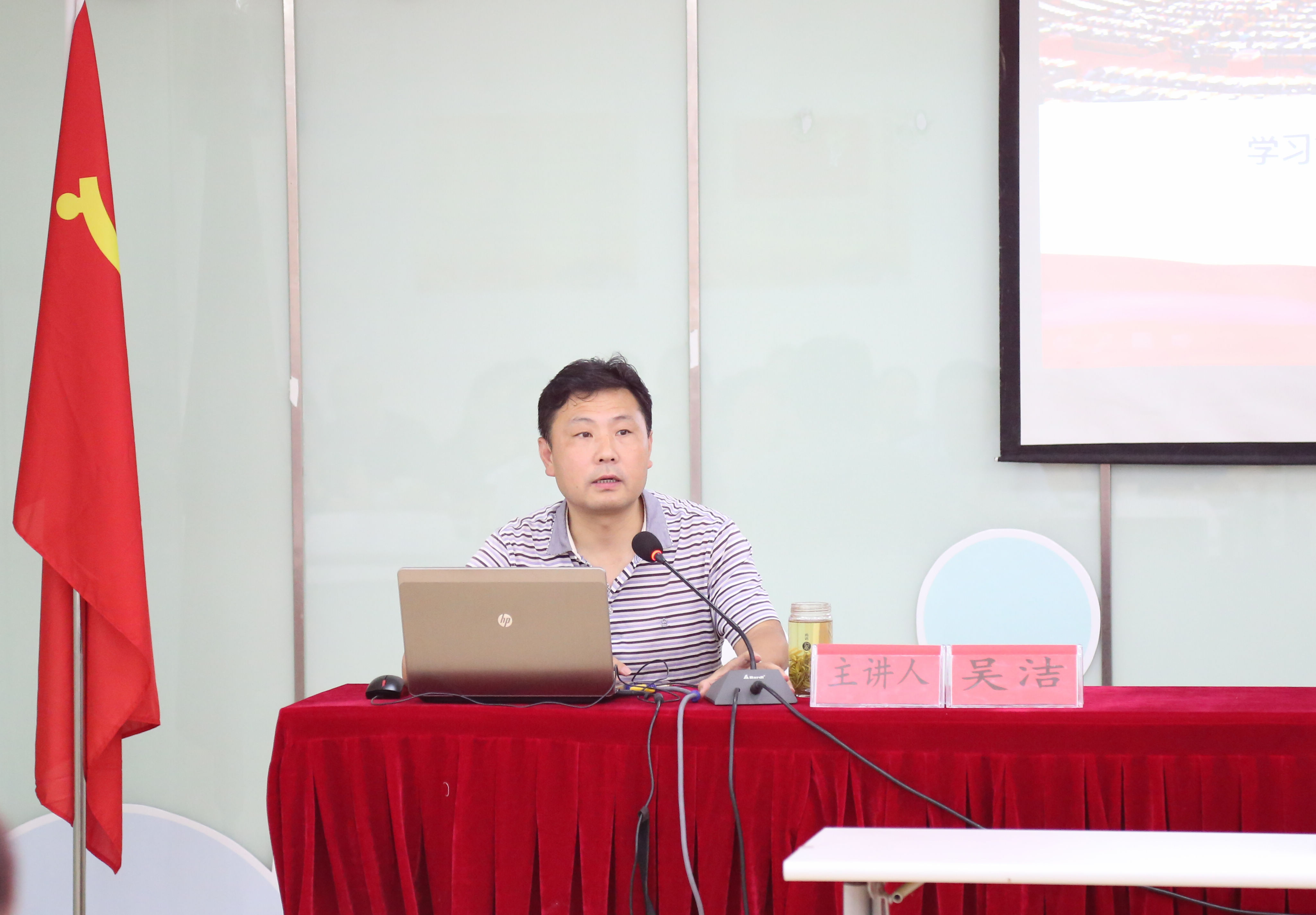 授課中,吳潔教授以“學(xué)習(xí)貫徹習(xí)近平新時(shí)代中國特色社會(huì)主義思想和黨的十九大精神”為主題,從深刻領(lǐng)會(huì)黨的十九大主題及主要成果、習(xí)近平新時(shí)代中國特色社會(huì)主義思想的歷史地位和豐富內(nèi)涵、十八大以來黨和國家發(fā)生的歷史性變革、新時(shí)代的社會(huì)主要矛盾新變化、全面建設(shè)現(xiàn)代化強(qiáng)國的戰(zhàn)略部署、堅(jiān)定不移全面從嚴(yán)治黨的重大部署等六個(gè)方面,對(duì)習(xí)近平新時(shí)代中國特色社會(huì)主義思想及黨的十九大精神作了系統(tǒng)、全面的解讀與闡述。吳教授結(jié)合自己的學(xué)習(xí)體會(huì),運(yùn)用了大量生動(dòng)的數(shù)據(jù)和事例,語言通俗易懂,邏輯清晰有秩,不斷引起在場黨員的共鳴,會(huì)上反響熱烈。