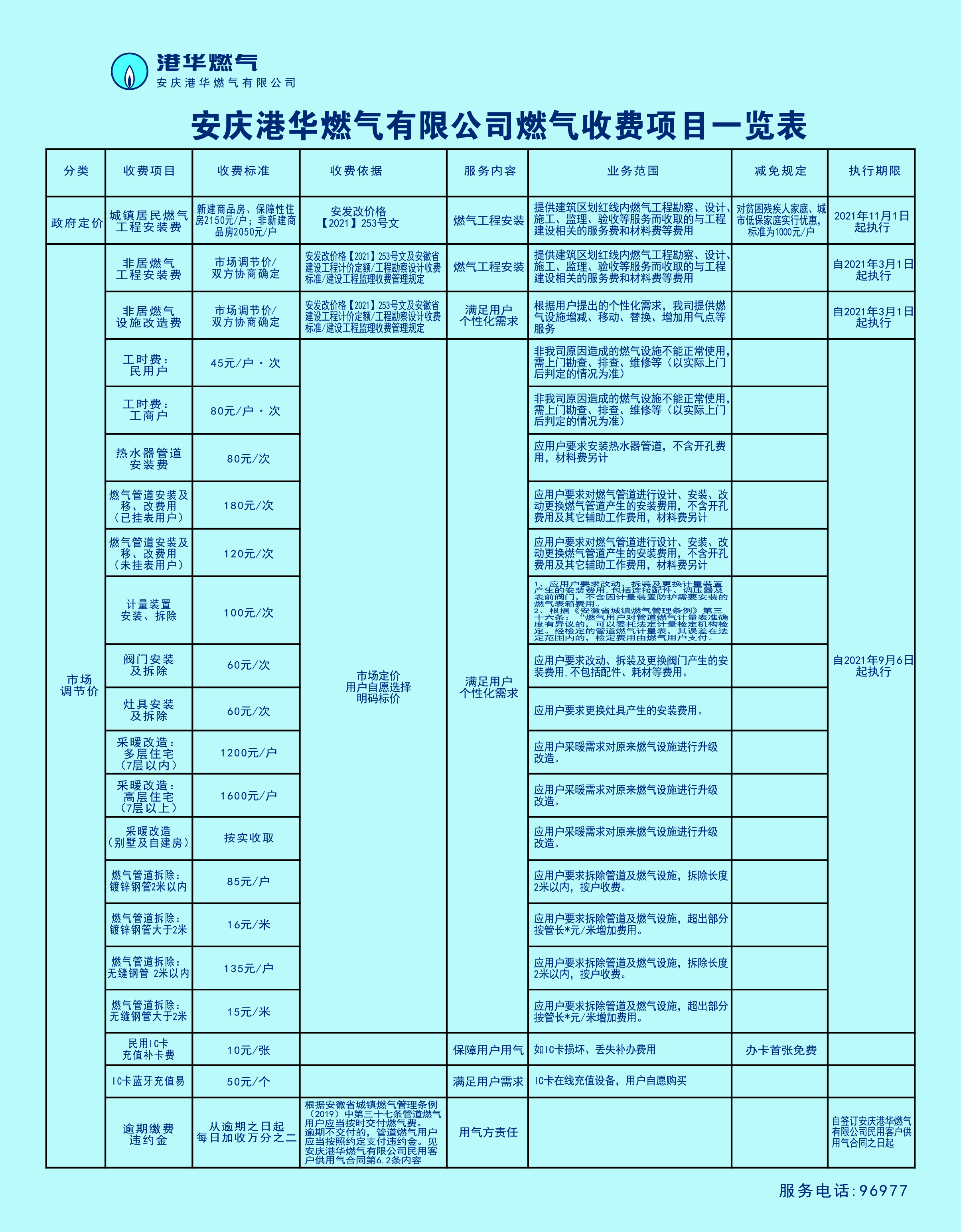 安慶市供氣行業(yè)收費(fèi)項(xiàng)目清單