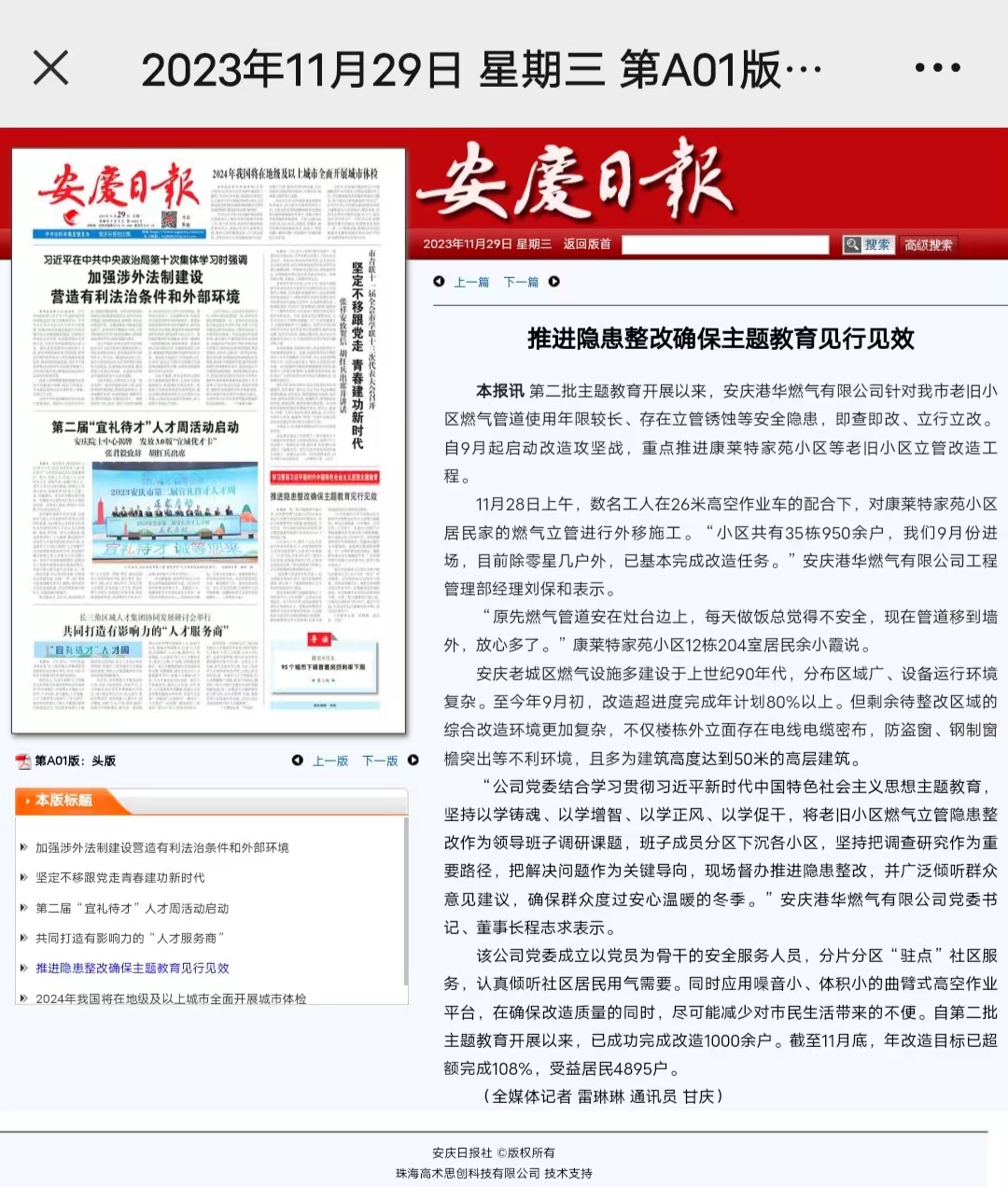 推進隱患整改確保主題教育見行見效(轉(zhuǎn)載于安慶日報)
