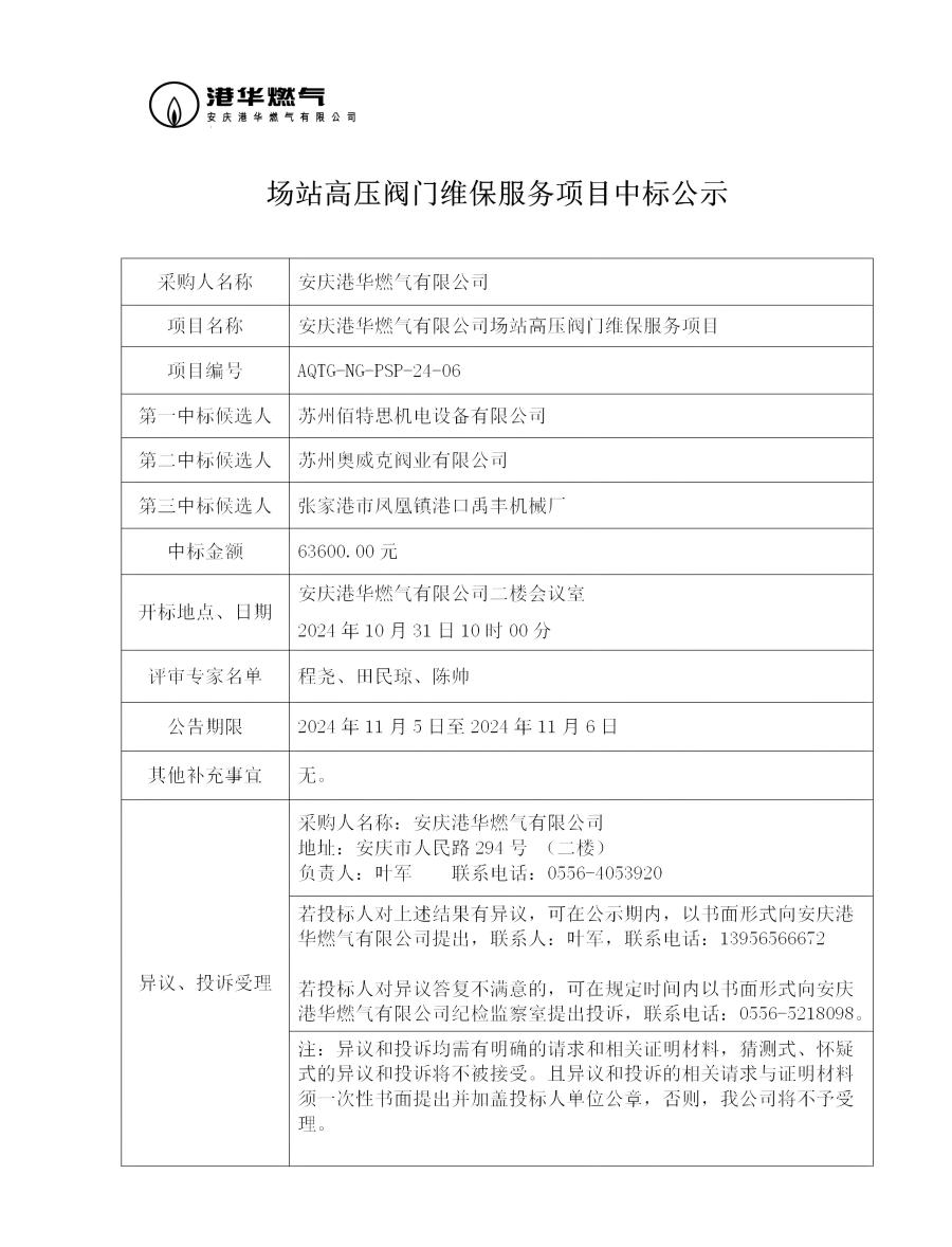 場站高壓閥門維保服務(wù)項目中標(biāo)公示