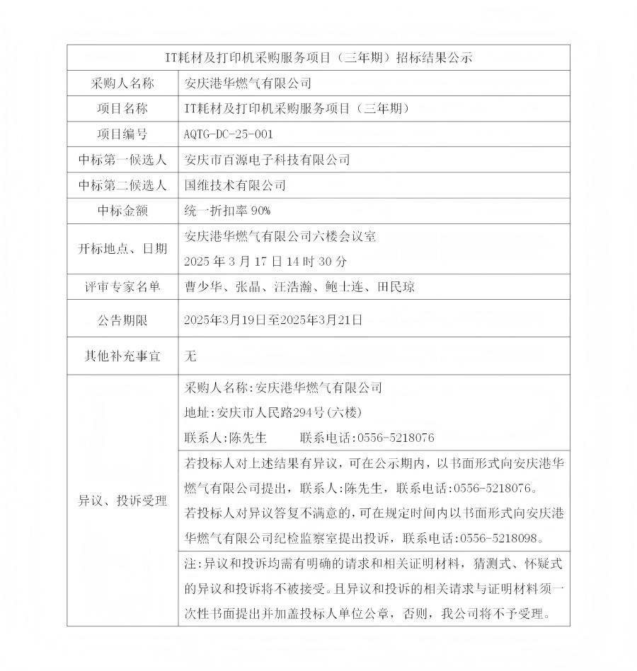 IT耗材及打印機(jī)采購(gòu)服務(wù)項(xiàng)目(三年期)招標(biāo)結(jié)果公示
