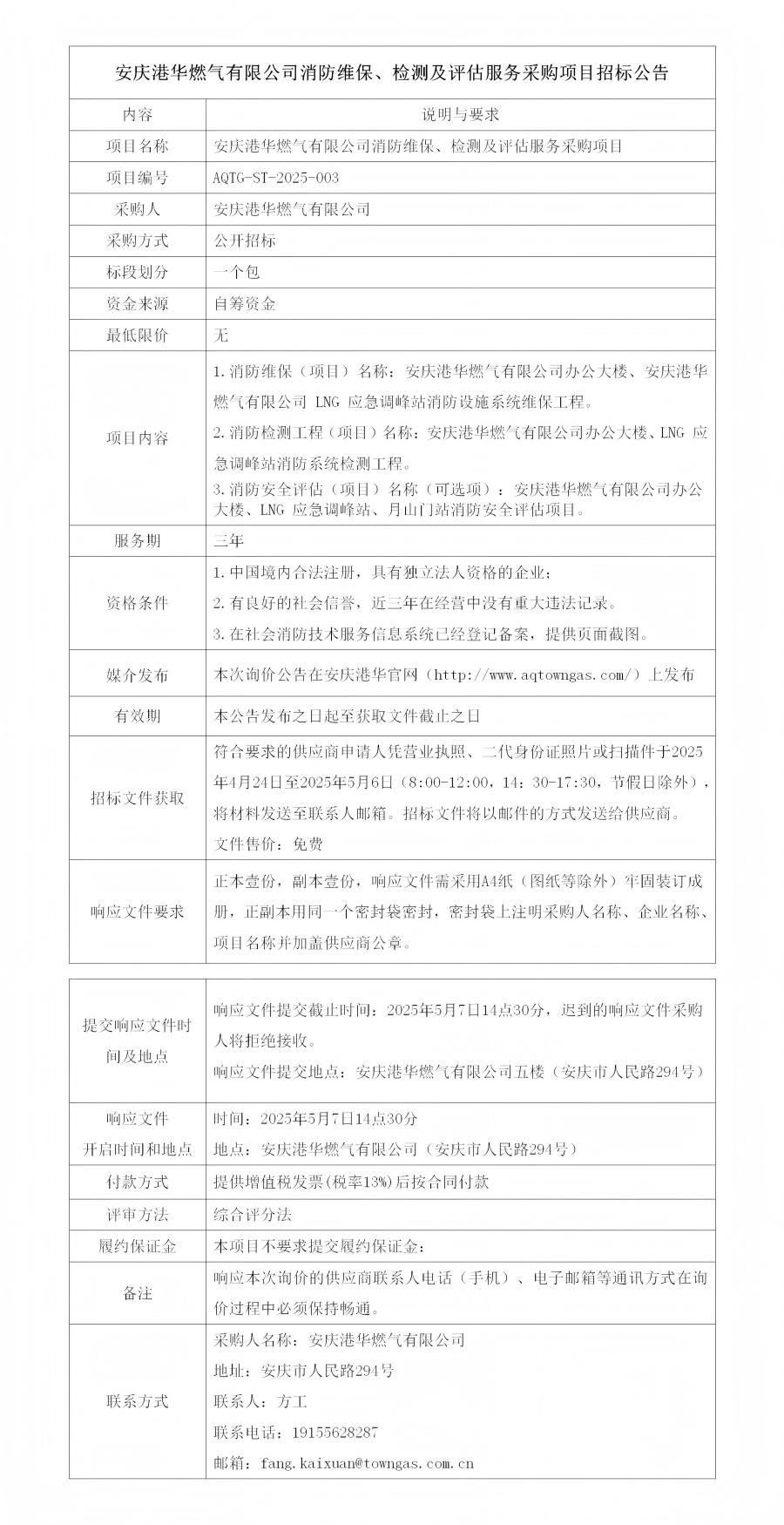 安慶港華燃?xì)庥邢薰鞠谰S保、檢測及評估服務(wù)采購項(xiàng)目招標(biāo)公告