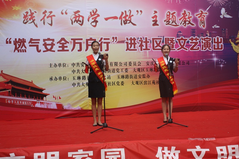 9月9日,安慶港華燃?xì)獍踩叭f戶行”走進(jìn)濱江苑社區(qū),與社居委文藝工作者一道,以豐富多彩的文藝演出形式向社區(qū)居民宣傳安全知識,提升社區(qū)居民燃?xì)獍踩庾R,掀起企民共創(chuàng)燃?xì)獍踩嘛L(fēng)尚。這是今年安慶港華燃?xì)獍矙z整改年攜手社區(qū)開展“消除隱患 家添安心”活動(dòng)以來公司走進(jìn)的第25個(gè)小區(qū)。