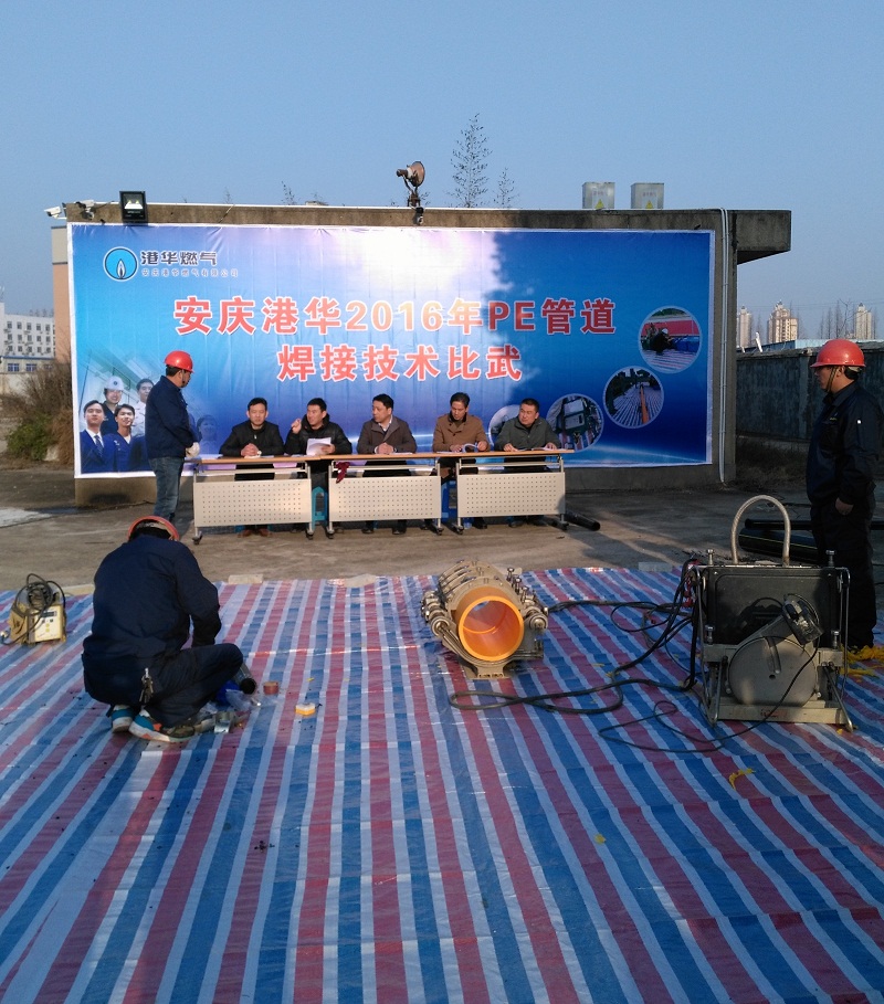 培訓通過案例分析等方式詳細講解了焊接法律法規(guī)、PE管生產工藝、焊接技術及注意事項,并就焊接關鍵點進行了集體探討。為保證比武活動順利有序開展,現(xiàn)場還成立了由公司總經理王政文、運行副總楊善俊、工程副總裴曉斌及相關專家組成的評委組。評委組通過抽簽的方式隨機確定各參賽人員的具體參賽項目(熱熔和電熔兩種焊接方式),并從焊接質量、作業(yè)時間等多個方面對所有選手進行綜合評判、打分與裁定。