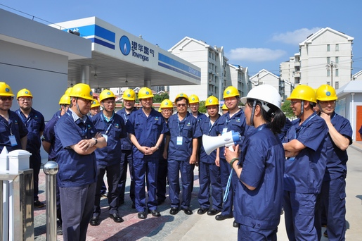 17日上午,巡查團四十余人在安慶港華董事長潘炳應(yīng)、總經(jīng)理王政文先生的陪同下來到安慶港華路加氣站,陳永堅總裁首先帶領(lǐng)大家圍成了一個“心”形,拍攝了寓意 “安全在我們心中”的宣傳照,展現(xiàn)了港華人的安全理念和團隊精神。在港華路加氣站,巡查團考察了站區(qū)環(huán)境建設(shè)、工藝區(qū)設(shè)備維護、噪音治理工程、加氣服務(wù)流程和站區(qū)安全管理等項目,陳總裁等集團領(lǐng)導(dǎo)對港華路加氣站的建設(shè)、管理成效給予了充分肯定。