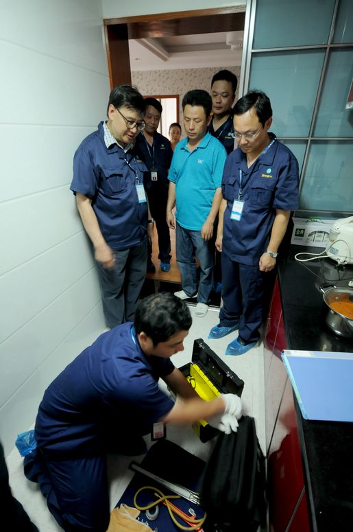 在安慶巡查的第三站——綠地迎江世紀(jì)城小區(qū),主要展示的是小區(qū)戶內(nèi)集中安檢。進入小區(qū),映入眼簾的是一排排安檢宣傳、咨詢、安全燃氣具展示區(qū),宣傳展板向居民展示燃氣安全使用知識、燃氣事故警示及安全燃氣具的使用等常識,工作人員細致耐心的解答居民的咨詢,并發(fā)放《燃氣客戶安全用氣手冊》。陳總裁等集團領(lǐng)導(dǎo)跟隨安檢員來到客戶家中,觀看戶內(nèi)安檢的每個環(huán)節(jié),當(dāng)安檢人員規(guī)范地完成整個安檢流程后,陳總裁給予了“很好,不亞于香港水平”的高度評價。